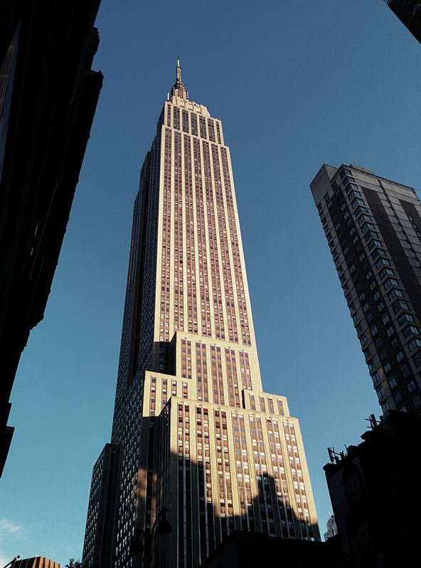 L’Empire State Building , col suo stile art déco è stato imitato in molte città del mondo ma nessuno ha la sua bellezza, situato a Midtown esattamente all’angolo tra la 5th Avenue e la West 34th Street, misura 443 metri in altezza e gode di una delle viste più mozzafiato dal suo osservatorio da poco restrutturato al 102 esimo piano .