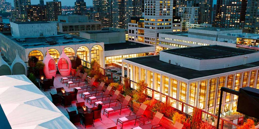 GANSEVOORT ROOFTOP un altra terrazza meravigliosa che si trova sul tetto del bellissimo Hotel omonimo, Al suo interno ed esterno sono infatti presenti caminetti, un patio di piastrelle a mosaico fatte a mano ed una piscina.Per poter entrare è richiesto un abbigliamento adeguato, abito da sera e scarpe con il tacco per le donne, maglietta e scarpe da sera per gli uomini, la vista sull’Empire State Building è meravigliosa ed è consigliabile la prenotazione .